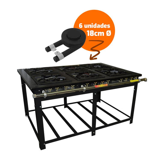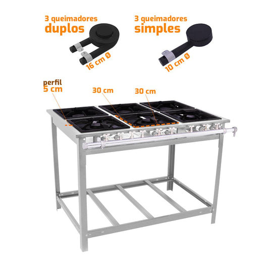 Para restaurantes que operam com um volume significativo de pedidos e um cardápio variado, o fogão 6 bocas da Salvador Comercial é a peça central da cozinha. Este equipamento de alta capacidade permite que sua equipe gerencie um grande número de preparações simultaneamente, otimizando o fluxo de trabalho e garantindo que todos os pratos sejam servidos com agilidade e a qualidade que seus clientes esperam.