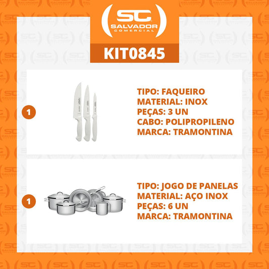 --Fornecedor:Kit - Faqueiro Premium 3 Pecas + 1 Jogo de Panelas Inox Allegra 5 Pecas - TramontinaTRAMONTINAPreço normal R$ 549,67 12x de R$ 45,80 sem jurosPreço normalPreço unitário / por