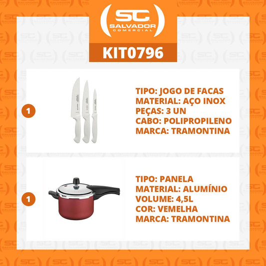 --Fornecedor:Kit - Faqueiro Premium 3 Peças + Panela de Pressão 4,5 Vancouver Vermelho - TramontinaTRAMONTINAPreço normal R$ 305,62 12x de R$ 25,46 sem jurosPreço normalPreço unitário / por