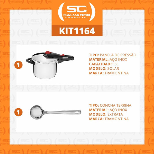 --Fornecedor:Panela de Pressão 6l Aço Inox Solar + Concha Inox Extrata - TramontinaTRAMONTINAPreço normal R$ 729,95 12x de R$ 60,82 sem jurosPreço normalPreço unitário / por