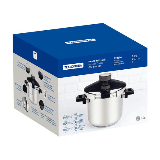 --Fornecedor:Panela Pressão Presto Aço Inox Fundo Triplo 5 Dispositivos de Segurança 22 cm 6l - Tramontina 62518220TRAMONTINAPreço normal R$ 628,55 12x de R$ 52,37 sem jurosPreço normalPreço unitário / por