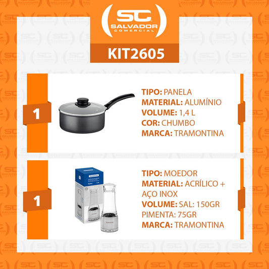 --Fornecedor:Panela Turim Alumínio Antiaderente 18cm 1,4l Ptc + Moedor de Sal e Pimenta Grande - TramontinaTRAMONTINAPreço normal R$ 160,57 12x de R$ 13,38 sem jurosPreço normalPreço unitário / por