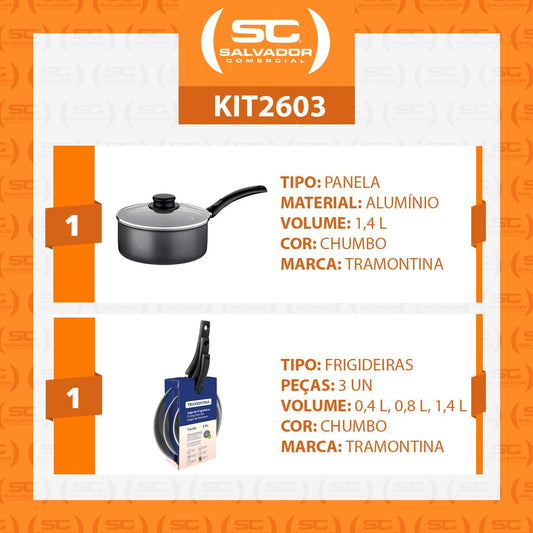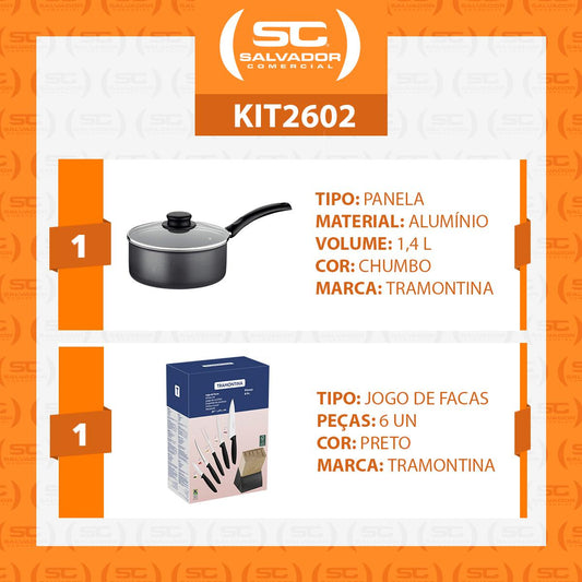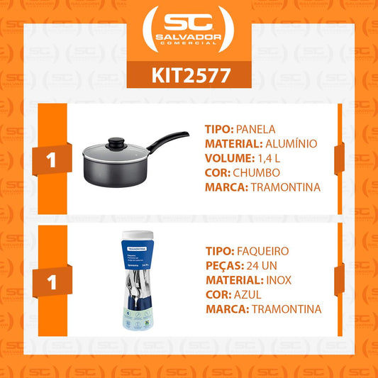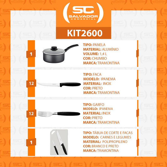 --Fornecedor:Panela Turim Alumínio Chumbo Antiaderente 1,4l + Cojunto Ipanema 24pc + Tábua e Facas - TramontinaTRAMONTINAPreço normal R$ 203,40 12x de R$ 16,95 sem jurosPreço normalPreço unitário / por