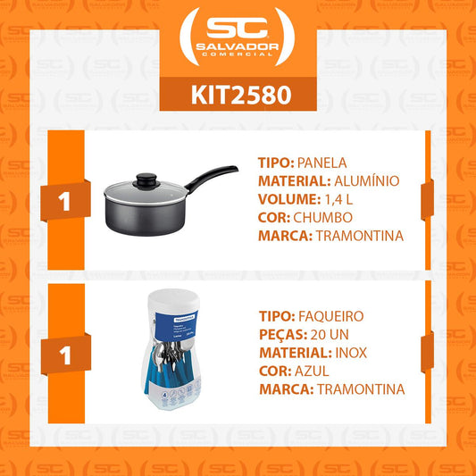 --Fornecedor:Panela Turim Alumínio Chumbo Antiaderente 1,4L PTC + Faqueiro Leme 20pc - TramontinaTRAMONTINAPreço normal R$ 98,05 12x de R$ 8,17 sem jurosPreço normalPreço unitário / por