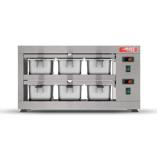 Os conservadores de proteína, como os modelos da Red Chameleon, são projetados para armazenar hambúrgueres, bifes, frangos grelhados e outros ingredientes quentes sem perda de suculência. A temperatura é mantida de forma constante, evitando que a proteína resseque ou esfrie, mesmo nos horários de pico.