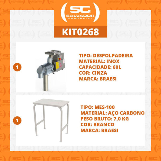 --Fornecedor:Kit - Despolpadeira 3 Peneiras 60l Des-60 Bivolt + Mesa Mes-100 - BraesiBRAESIPreço normal R$ 4.884,84 12x de R$ 407,07 sem jurosPreço normalPreço unitário / por