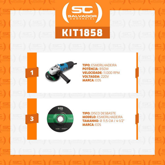 --Fornecedor:Esmerilhadeira Angular Profissional 4.1/2 Pol 850W Max Pro EEM01PRO 127V Com 3 Discos Extras - EOSEOSPreço normal R$ 243,21 12x de R$ 20,26 sem jurosPreço normalPreço unitário / por