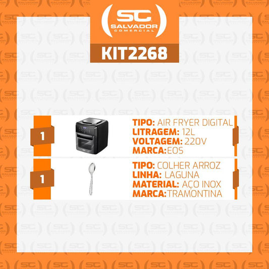 --Fornecedor:Conjunto Fritadeira Air Fryer Digital Eaf12t 220v Eos e Colher Para Arroz Laguna TramontinaEOSPreço normal R$ 710,14 12x de R$ 59,17 sem jurosPreço normalPreço unitário / por