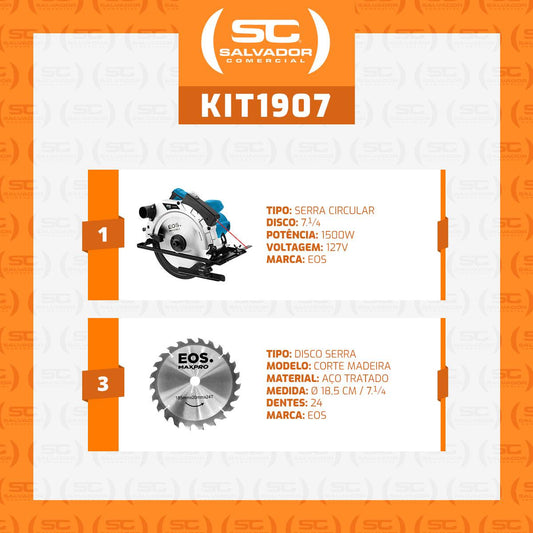 --Fornecedor:Serra Circular Profissional 1500W ESC01Pro 127V Max Pro E 3 Discos de Corte - EOSEOSPreço normal R$ 477,83 12x de R$ 39,81 sem jurosPreço normalPreço unitário / por