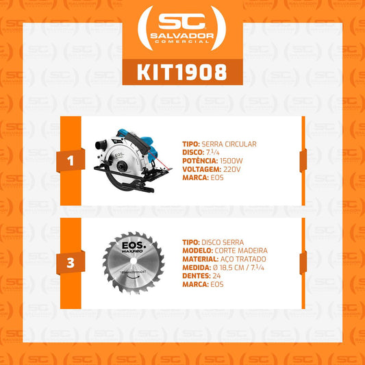 --Fornecedor:Serra Circular Profissional 1500W 220V ESC01Pro Max Pro E Disco De Corte - EOSEOSPreço normal R$ 421,29 12x de R$ 35,10 sem jurosPreço normalPreço unitário / por