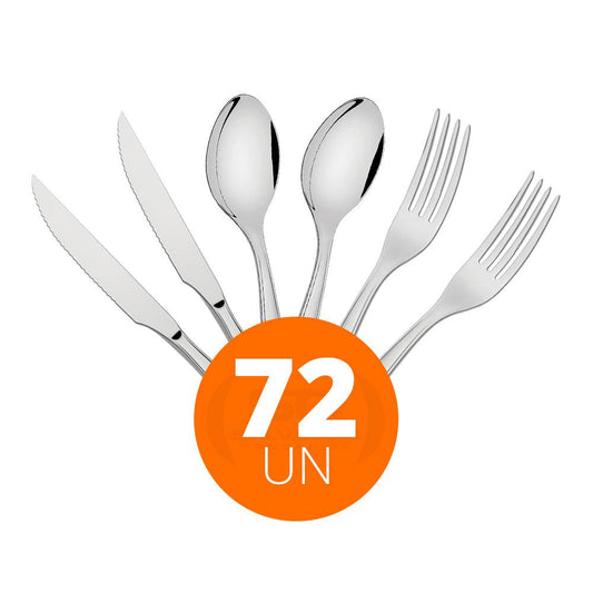 --Fornecedor:KIT - Jogo de Facas, Garfos e Colheres Luxo Laguna 72 Peças em Aço Inox ITOP - TramontinaTRAMONTINAPreço normal R$ 592,03 12x de R$ 49,33 sem jurosPreço normalPreço unitário / por