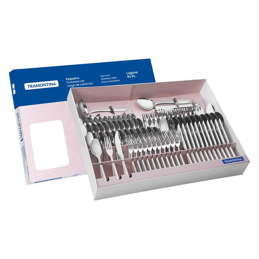 --Fornecedor:Faqueiro Laguna em Aço Inox 91 Peças de Luxo com Acabamento Brilho - Tramontina 66906890TRAMONTINAPreço normal R$ 433,64 12x de R$ 36,13 sem jurosPreço normalPreço unitário / por