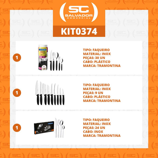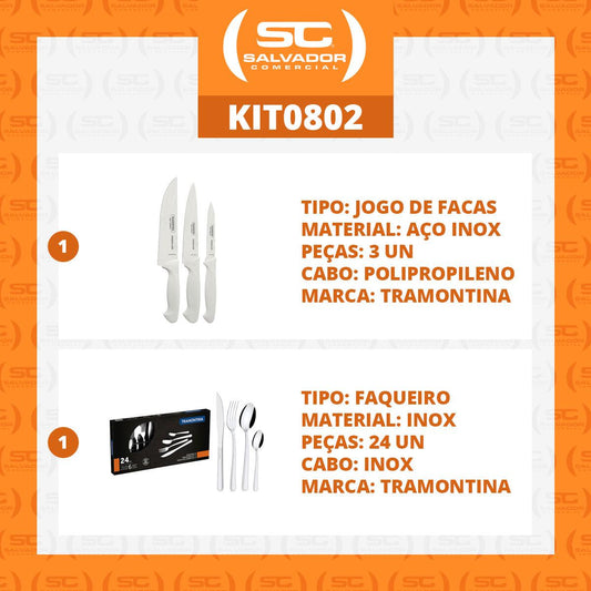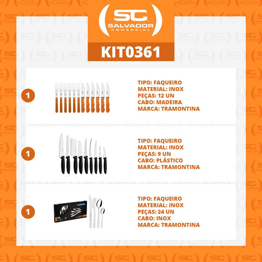 --Fornecedor:Kit - Jogo de Churrasco Inox 12 Peças + 1 Conjunto Facas 9pç + 1 Faqueiro Inox 24pç - TramontinaTRAMONTINAPreço normal R$ 323,77 12x de R$ 26,98 sem jurosPreço normalPreço unitário / por