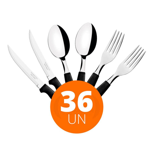 --Fornecedor:KIT - Jogo de Facas, Garfos e Colheres Luxo Laguna 36 Peças em Aço Inox ITOP - TramontinaTRAMONTINAPreço normal R$ 296,01 12x de R$ 24,66 sem jurosPreço normalPreço unitário / por