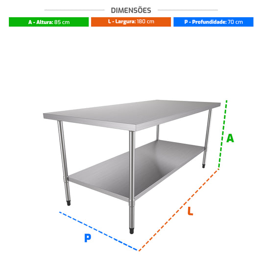 --Fornecedor:Mesa Profissional Bancada de Apoio Total Inox 1,80m X 0,70m Bai 1800/700 - MetalcubasMETALCUBASPreço normal R$ 2.202,69 12x de R$ 183,55 sem jurosPreço normalPreço unitário / por