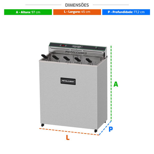 --Fornecedor:Fritador Elétrico Pedestal 5 Cestos 30l Somente Óleo 10000w Foe 30 p 220v - MetalcubasMETALCUBASPreço normal R$ 4.493,96 12x de R$ 374,49 sem jurosPreço normalPreço unitário / por