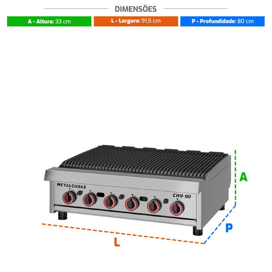 --Fornecedor:Char Broiler Chapa Grill Premium 90cm Profissional Aço Inox a Gás Chb-90 g2 - MetalcubasMETALCUBASPreço normal R$ 6.443,93 12x de R$ 536,99 sem jurosPreço normalPreço unitário / por