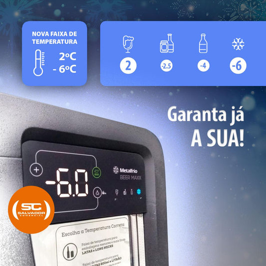 --Fornecedor:Cervejeira Beer Maxx 250 Porta Visor +2 a -6ºc 264/228L Vn25t Preto Onix 127v - MetalfrioMETALFRIOPreço normal R$ 5.409,21 12x de R$ 450,76 sem jurosPreço normalPreço unitário / por
