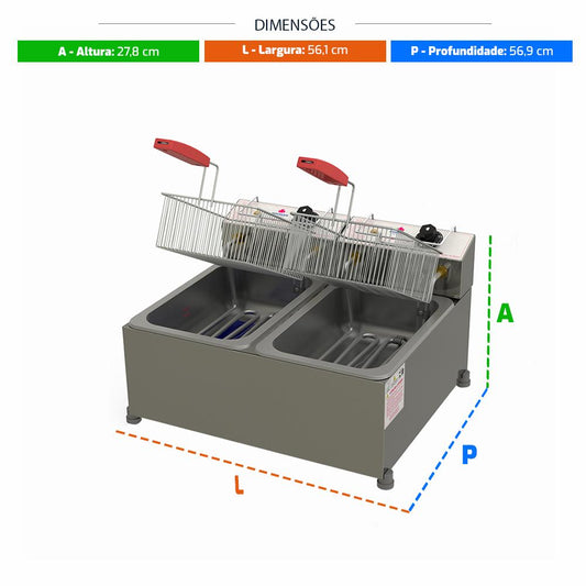 --Fornecedor:Fritador Tacho fritura Retangular 10 Litros 2 cubas Óleo PR-20E ProgásPROGASPreço normal R$ 1.403,11 12x de R$ 116,92 sem jurosPreço normalPreço unitário / por