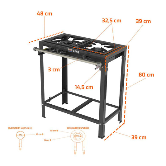 --Fornecedor:Fogão Industrial a Gás 2 Bocas 1 Simples 1 Dupla Espera para Forno PMSD-21 - ProgásPROGASPreço normal R$ 747,00 12x de R$ 62,25 sem jurosPreço normalPreço unitário / por