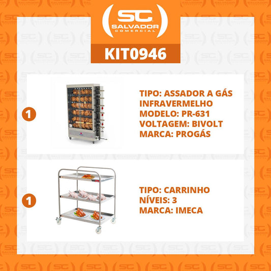 --Fornecedor:Assador de Frango Gás 6 Espetos Infra Pr-631 Progás + Tesoura Tramontina + Carrinho Inox 3 Níveis ImecaPROGASPreço normal R$ 6.550,10 12x de R$ 545,84 sem jurosPreço normalPreço unitário / por