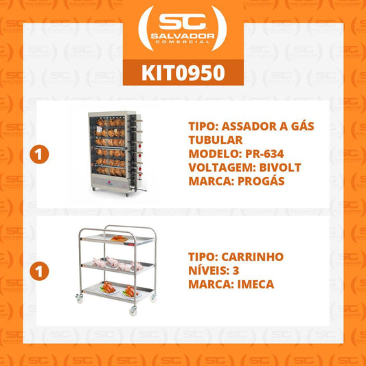 --Fornecedor:Assador de Frango Gás 4 Espetos Tubular Pr-623 Progás + Tesoura Tramontina + Carrinho Inox 3 Níveis ImecaPROGASPreço normal R$ 5.071,95 12x de R$ 422,66 sem jurosPreço normalPreço unitário / por