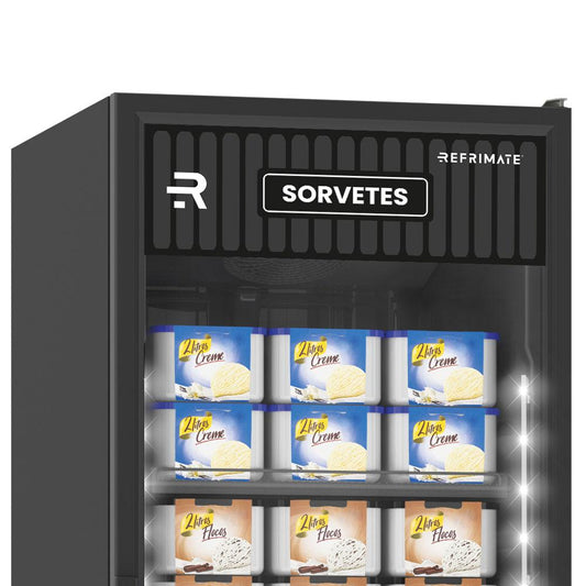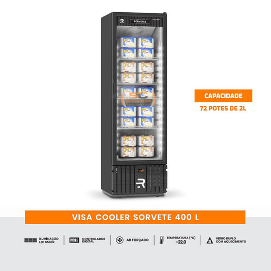 --Fornecedor:Visa Cooler Sorvete Porta Vidro Aquecido Ar Forçado -22ºC 400L VCS400PVPP Preto Externo e Interno 220V - RefrimateREFRIMATEPreço normal R$ 10.961,86 12x de R$ 913,48 sem jurosPreço normalPreço unitário / por