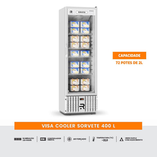 --Fornecedor:Visa Cooler Sorvete Porta Vidro Aquecido Ar Forçado -22ºC 400L VCS400PVPB 220V - RefrimateREFRIMATEPreço normal R$ 10.961,86 12x de R$ 913,48 sem jurosPreço normalPreço unitário / por