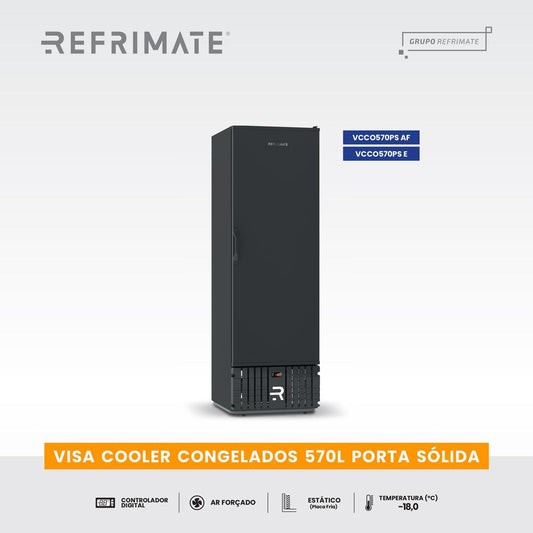 --Fornecedor:Visa Cooler Congelados Porta Sólida Ar Forçado -18ºC 570l VCCO570PSAFB Preta 220V - RefrimateREFRIMATEPreço normal R$ 7.390,78 12x de R$ 615,89 sem jurosPreço normalPreço unitário / por