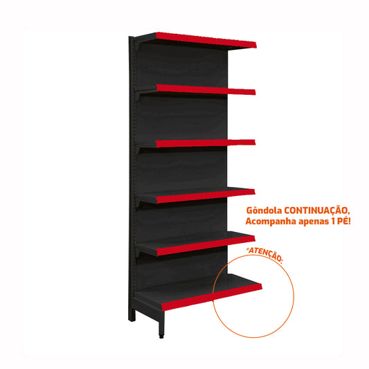 --Fornecedor:Gôndola Prateleira Preta 6 Níveis 40x30 New Plus 2,00 Parede Inicial pe Vermelho - Sa GôndolasSA GONDOLASPreço normal R$ 705,76 12x de R$ 58,81 sem jurosPreço normalPreço unitário / por