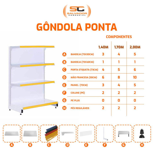 --Fornecedor:Gôndola Prateleira New Plus 1,70 Central Continuação GCC - Sa Gôndolas Porta Etiquetas AmareloSA GONDOLASPreço normal R$ 836,44 12x de R$ 69,70 sem jurosPreço normalPreço unitário / por