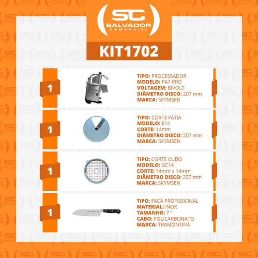 --Fornecedor:Processador de Alimentos Corte Fatias 10mm e Cubos 10mm PA7 PRO Bivolt Skymsen e Jogo de Facas 9 PeçasSKYMSENPreço normal R$ 5.094,61 12x de R$ 424,55 sem jurosPreço normalPreço unitário / por