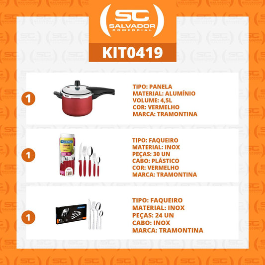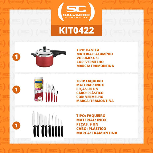 --Fornecedor:KIT - Panela de Pressão 4,5 Vermelha + 1 Faqueiro 30pç + 1 Conjunto Facas 9pç - TramontinaTRAMONTINAPreço normal R$ 442,25 12x de R$ 36,85 sem jurosPreço normalPreço unitário / por