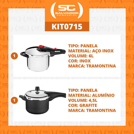 --Fornecedor:Kit - Panela de Pressão 6l Aço Linha Solar + Panela de Pressão 4,5l Vancouver Grafite - TramontinaTRAMONTINAPreço normal R$ 941,94 12x de R$ 78,49 sem jurosPreço normalPreço unitário / por