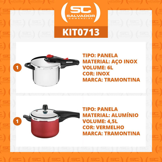 --Fornecedor:Kit - Panela de Pressão 6l Aço Linha Solar + Panela de Pressão 4,5l Vancouver Vermelha - TramontinaTRAMONTINAPreço normal R$ 941,94 12x de R$ 78,49 sem jurosPreço normalPreço unitário / por