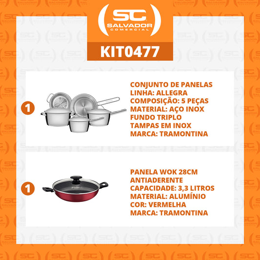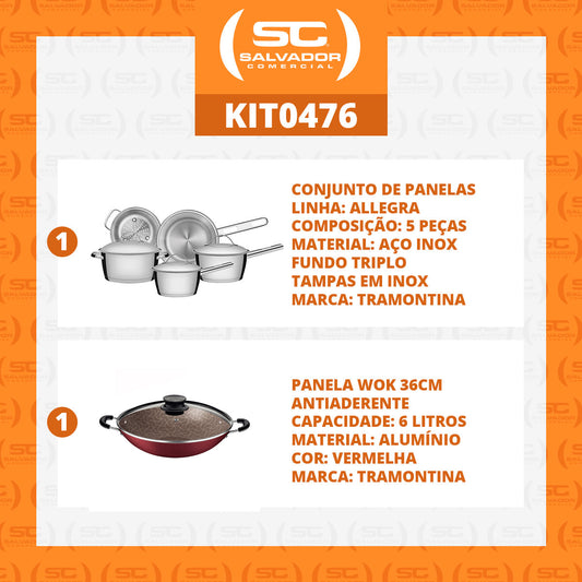--Fornecedor:Kit - Jogo de Panelas Allegra 5 Pçs Inox + Panela Wok Alumínio Loreto 28cm Vermelha - TramontinaTRAMONTINAPreço normal R$ 634,34 12x de R$ 52,86 sem jurosPreço normalPreço unitário / por