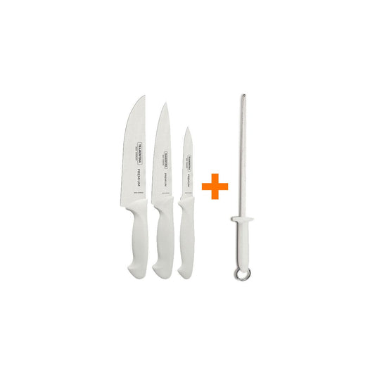 --Fornecedor:Kit - Jogo de Facas Premium 3 Peças + 1 Chaira Estriada 10 Pol Profissional - TramontinaTRAMONTINAPreço normal R$ 181,92 12x de R$ 15,16 sem jurosPreço normalPreço unitário / por