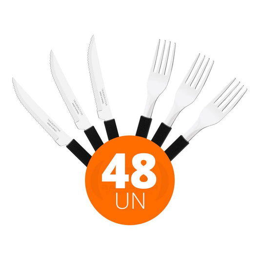 --Fornecedor:KIT - Jogo de Facas e Garfo Leme 96 Peças em Aço Inox Cabo Preto PBAG - TramontinaTRAMONTINAPreço normal R$ 221,96 12x de R$ 18,49 sem jurosPreço normalPreço unitário / por