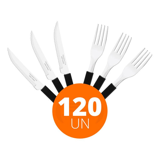--Fornecedor:KIT - Jogo de Facas e Garfo Leme 120 Peças em Aço Inox Cabo Preto PBAG - TramontinaTRAMONTINAPreço normal R$ 277,44 12x de R$ 23,12 sem jurosPreço normalPreço unitário / por