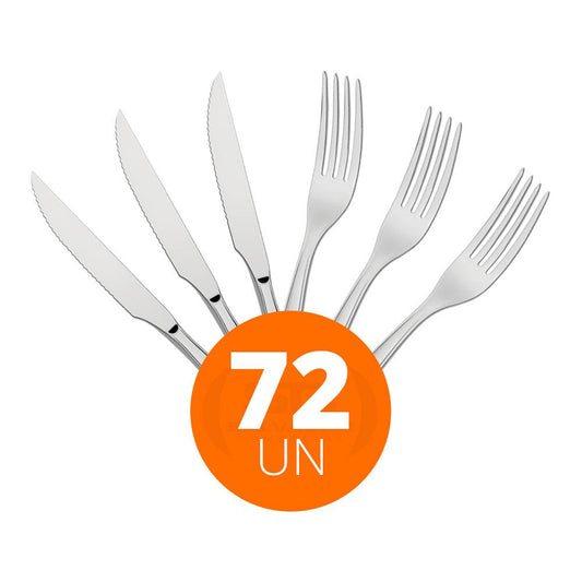 --Fornecedor:KIT - Jogo de Faca e Garfo Luxo Laguna 72 Peças em Aço Inox ITOP - TramontinaTRAMONTINAPreço normal R$ 657,81 12x de R$ 54,81 sem jurosPreço normalPreço unitário / por