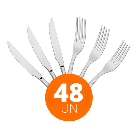 --Fornecedor:KIT - Jogo de Faca e Garfo Luxo Laguna 48 Peças em Aço Inox ITOP - TramontinaTRAMONTINAPreço normal R$ 438,54 12x de R$ 36,54 sem jurosPreço normalPreço unitário / por