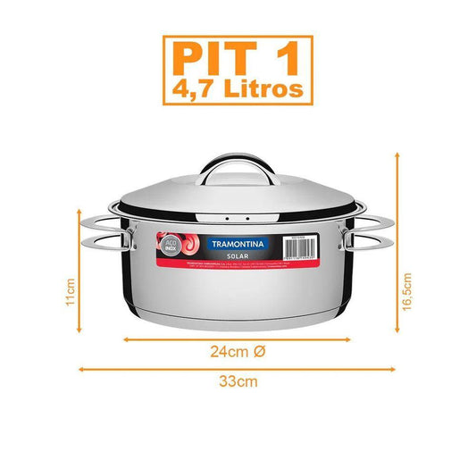 --Fornecedor:Kit Caçarola Aço Inox Solar 4,7 Litros PIT 1 + Pegador Térmico Moldê em Silicone 35 cm - TramontinaTRAMONTINAPreço normal R$ 372,00 12x de R$ 31,00 sem jurosPreço normalPreço unitário / por