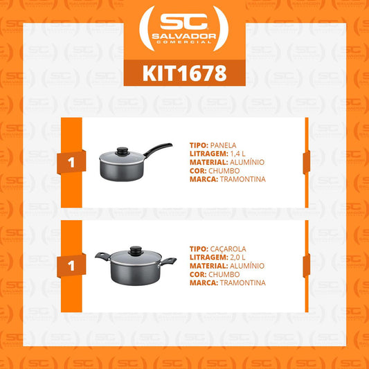 --Fornecedor:Jogo de Panelas Turim 4 Peças Alumínio Antiaderente PTC Chumbo - TramontinaTRAMONTINAPreço normal R$ 270,82 12x de R$ 22,56 sem jurosPreço normalPreço unitário / por