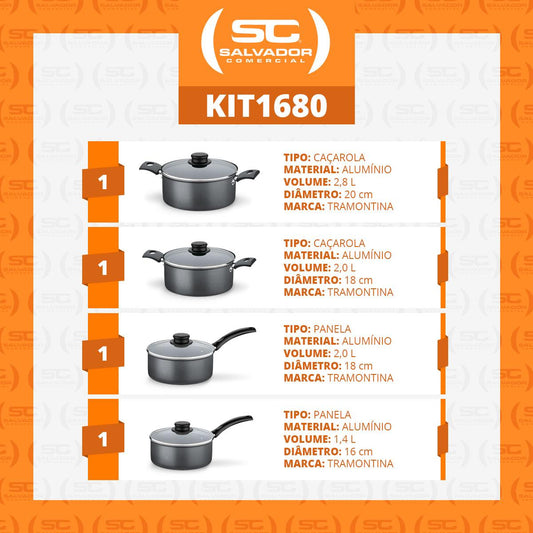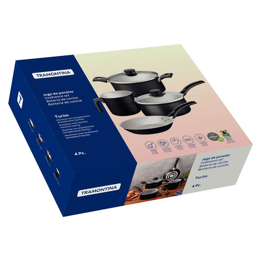 --Fornecedor:Jogo de Panelas Turim 4 Peças Alumínio Antiaderente PTC Chumbo - TramontinaTRAMONTINAPreço normal R$ 286,74 12x de R$ 23,89 sem jurosPreço normalPreço unitário / por