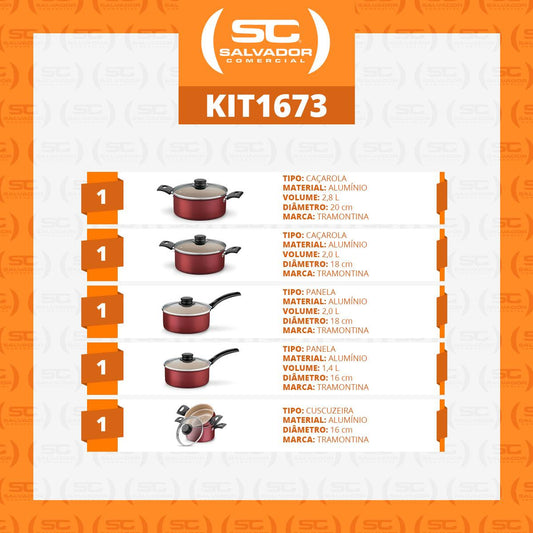 --Fornecedor:Jogo de Panelas Turim 5 Peças Alumínio Antiaderente PTV Vermelho - TramontinaTRAMONTINAPreço normal R$ 419,47 12x de R$ 34,95 sem jurosPreço normalPreço unitário / por
