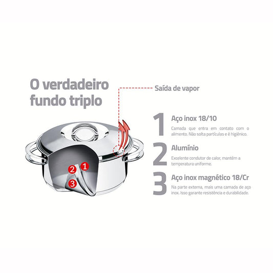 --Fornecedor:Caldeirão Solar em Aço Inox Fundo Triplo Com Tampa e Alças 24cm 7,8l - Tramontina 62505240TRAMONTINAPreço normal R$ 420,94 12x de R$ 35,07 sem jurosPreço normalPreço unitário / por