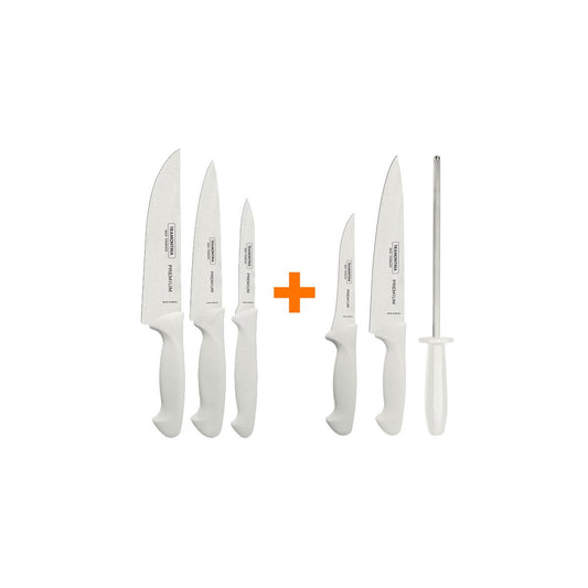 --Fornecedor:Kit - Faqueiro Premium 3 Peças + 1 Jogo de Facas Com Chaira Premium 3 Peças - TramontinaTRAMONTINAPreço normal R$ 167,85 12x de R$ 13,98 sem jurosPreço normalPreço unitário / por