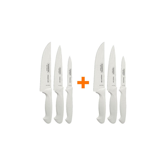 --Fornecedor:Kit - 2 Jogos de Facas Premium Em Aço Inox Cabo Branco 3 Peças - TramontinaTRAMONTINAPreço normal R$ 164,83 12x de R$ 13,73 sem jurosPreço normalPreço unitário / por