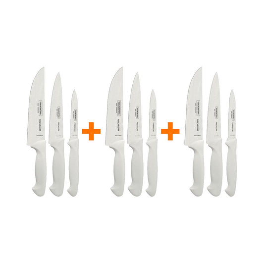 --Fornecedor:Kit - 3 Jogos de Facas Premium Em Aço Inox Cabo Branco 3 Peças - TramontinaTRAMONTINAPreço normal R$ 247,23 12x de R$ 20,60 sem jurosPreço normalPreço unitário / por