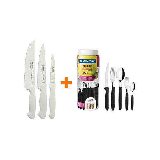 --Fornecedor:Kit - Faqueiro Premium 3 Peças + 1 Faqueiro 30 Peças Ipanema Preto - TramontinaTRAMONTINAPreço normal R$ 180,54 12x de R$ 15,04 sem jurosPreço normalPreço unitário / por